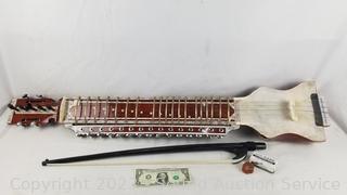 Lot #0306: Indian Dilruba String Instrument w/Bow & Case
