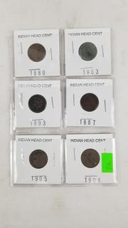 Lot #0314: 6 Antique 1880-1906 US Indian Head Cents
