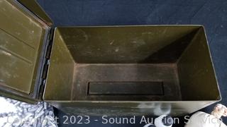 Lot Details: Approx. 3/8" dia bullets, various tiny BB's. 7" H x 11" x 5.75" ammo tin.