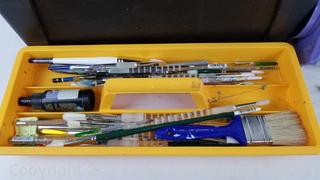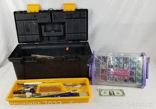Lot Details: Bedazzle Me! glass beads kit, 19.5" toolbox with paint brushes, paints.