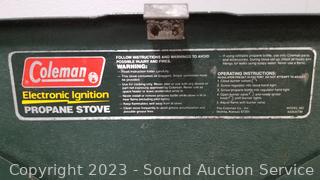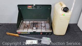 Lot #0140: Coleman Camp Stove, Chochlan's Camp Cooker, Chilton 5 Gal. Can