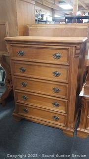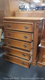 Lot #0013: Nice Bassett Oak 5-Drawer Vanity Dresser