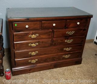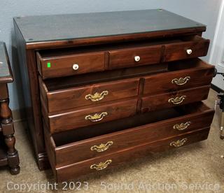 Lot #0165: Nice Ethan Allen Dark Stained 3-Drawer Dresser w/Glass Top