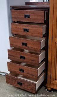 Lot Details: 55" H x 27" W x 19" D. In great cosmetic condition, very well made. Ball bearing drawer guides, top drawer is cedar lined, solid wood construction, dovetail joinery.