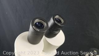 Lot Details: Light works, could see through lenses. Some cosmetic wear, loose at base. 10X lenses.