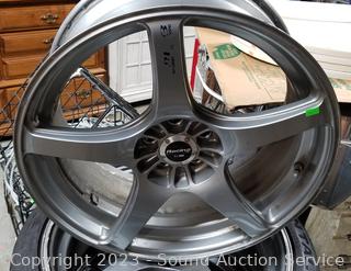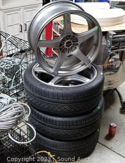 Lot #0290: Set of 4 Enkei Racing 19x8J Rims 3 w/Tires