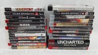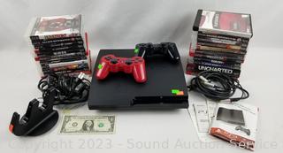 Lot #0263: Sony Playstation 3 w/23 Games, 2 Controllers