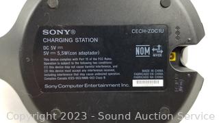 Lot Details: Works. Has been factory reset. Has some damage on the back corner. Both controllers are functioning. Comes with cordless charging dock & USB charging cables, power supply, A/V cords (tested using HDMI could not get A/V to work with newer TV, so unsure if was the TV or cables). 23 games & manuals, refer to photos for titles, genre, etc.