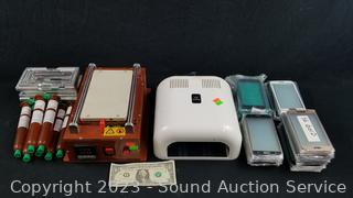 Lot Details: UV lamp works, Temperature Controller has power, otherwise untested, used our own power cord to power it on. Comes with a variety of different phone screen components and bottles of UV-Loca adhesive. Refer to photos for more information.