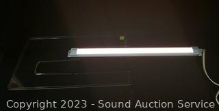 Lot Details: Comes with foot pedal, organizer, bar light, case & acrylic platform. Appears to be functioning as intended.