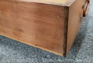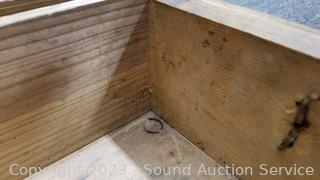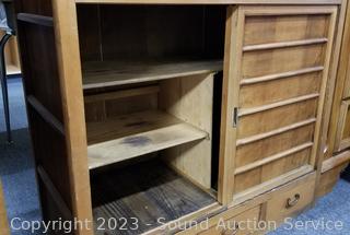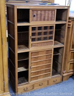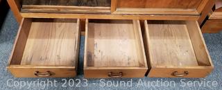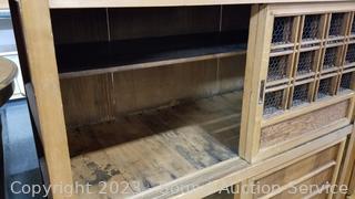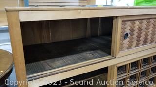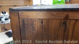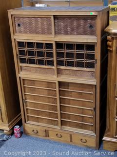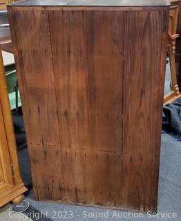 Lot Details: 52.5" H x 33.5" W x 15.5" D. Some scuffs, wear to finish. Solid wood construction.