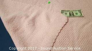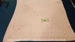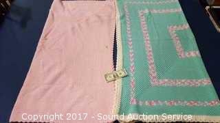 Pink and multi-color. Both are in excellent condition. Very heavy. Approx. 50" x 50".