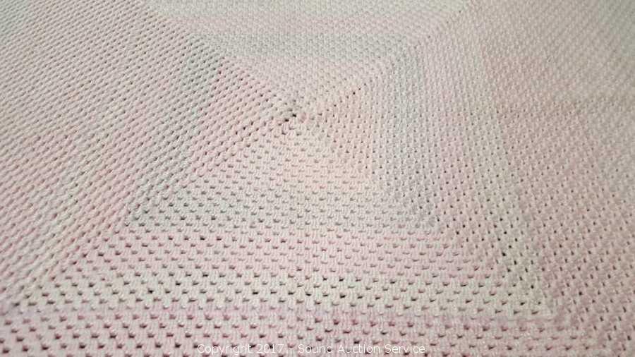 Lot #0153: Pink Tight Crocheted Afghan Throw Blanket