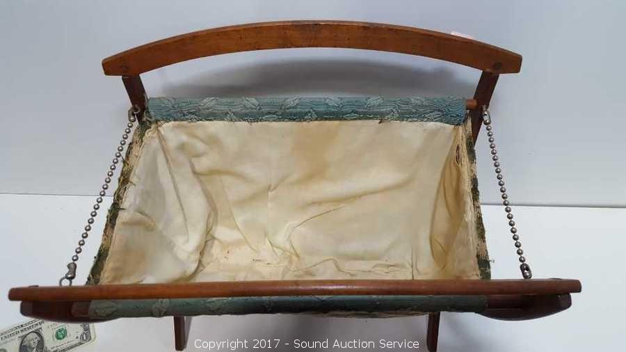 Lot #0051: Vintage Wooden Sewing Basket