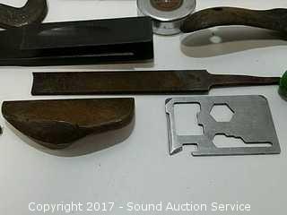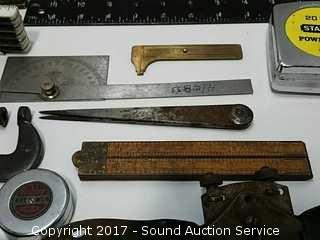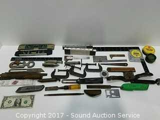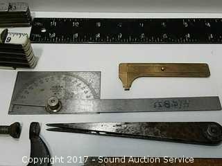Lot #0186: Vtg. Measuring Devices, Files, Squares & More