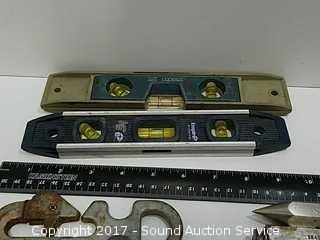 Includes: draw knife, micrometers, squares, torpedo level, folding rulers, and more.