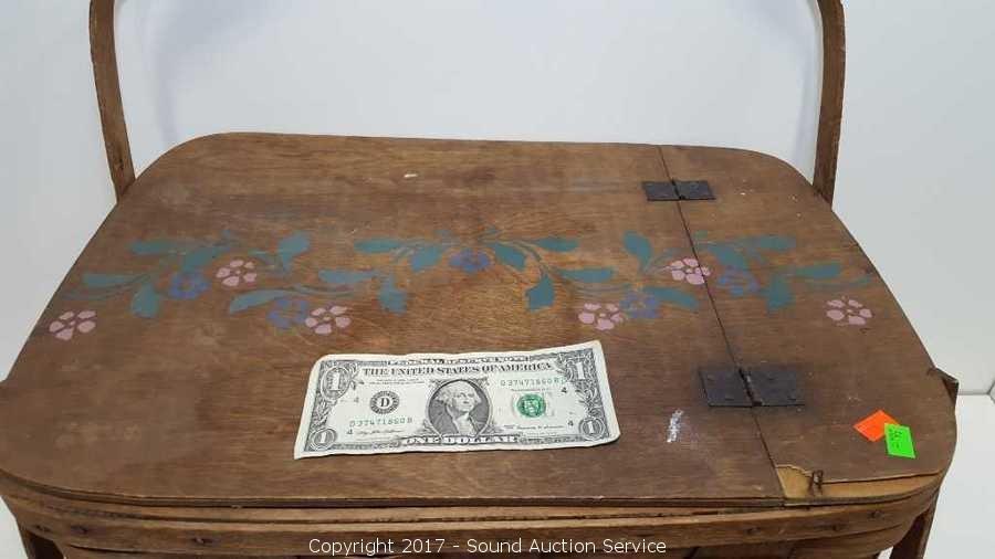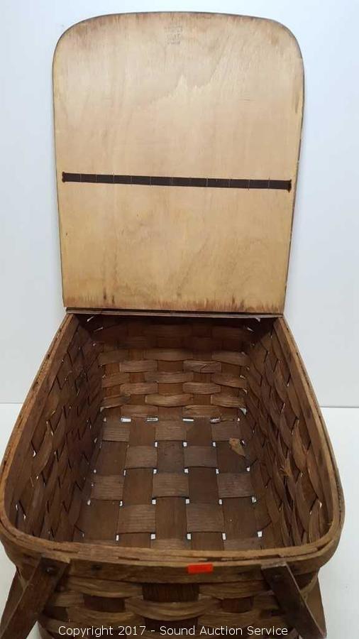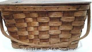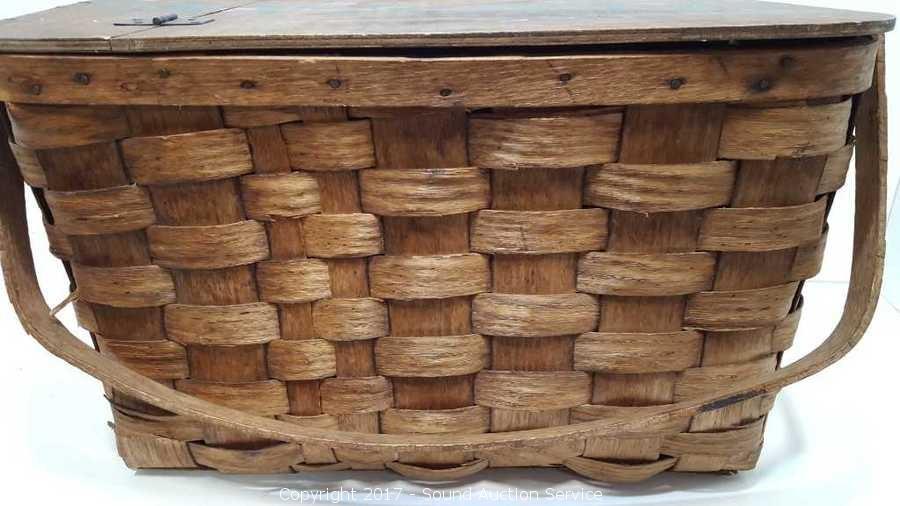 Lot #0056: Vtg. Wooden Woven Picnic Basket