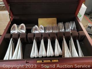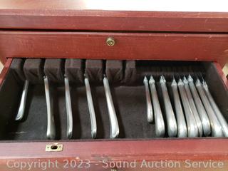 Lot Details: Various Literature, sewing patterns, International Pewter flatware w/chest & more. ATTN: Items may be missing pieces, damaged, not functioning, complete, no issues, etc. All items as is. Refer to photos for lot contents. Cart NOT included.