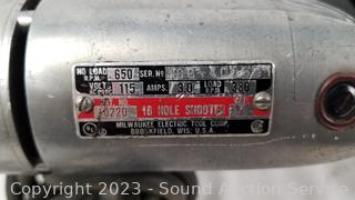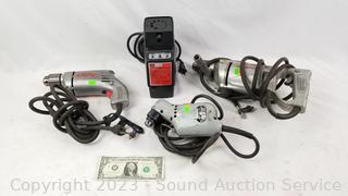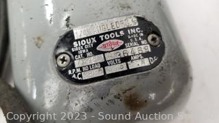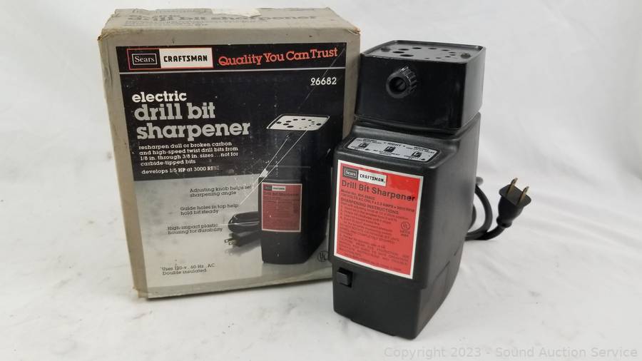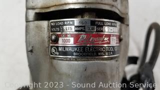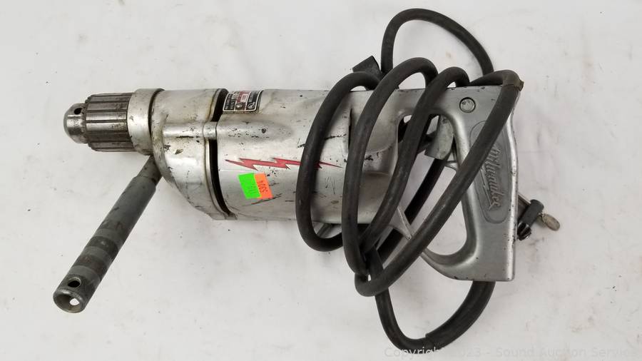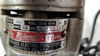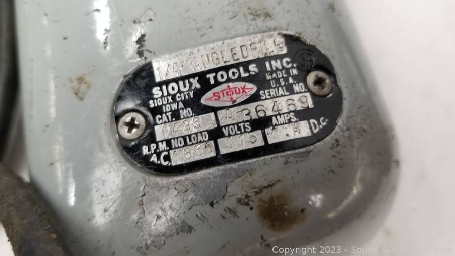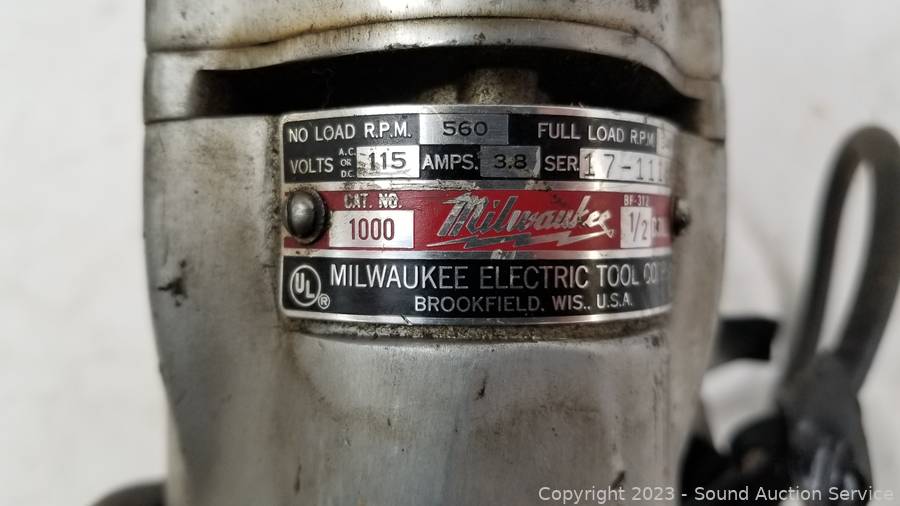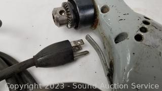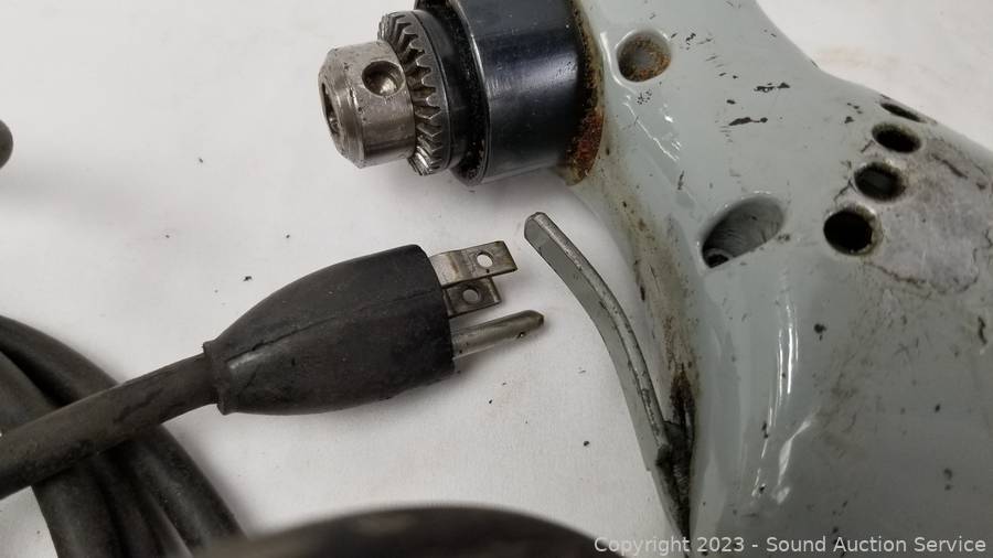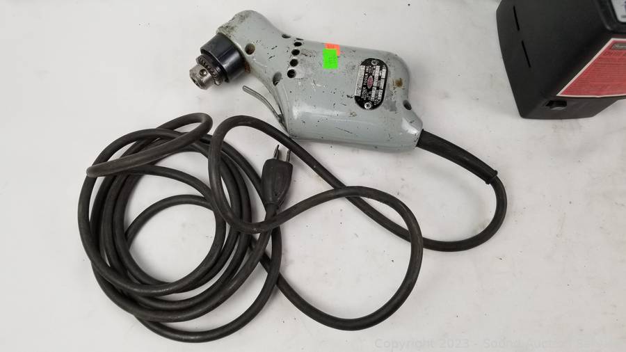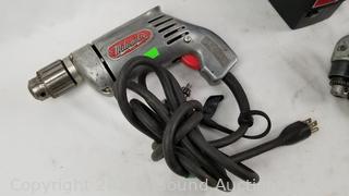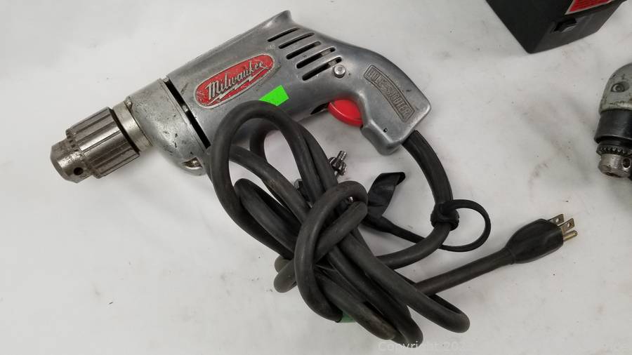 Lot Details: Milwaukee 3/8" drill, Sioux Tools 1/4" drill, Milwaukee 1/2" drill, Elec. Drill bit sharpener. All work.