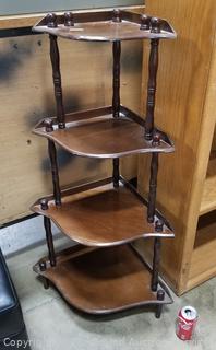 Lot #0023: 4-Tier Mahogany? Corner Shelving Unit
