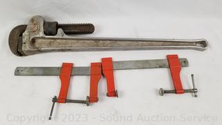 Lot #0092: Assorted "C" & Tension Clamps, 24" Pipe Clamp