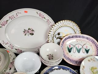 Lot Details: Plates, bowls, platters, ect. Various patterns, brands. Refer to photos for more info.