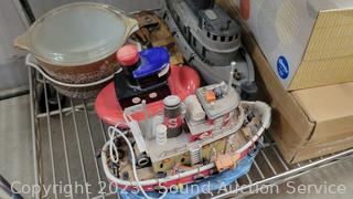 324 Lots including; Antique Colonial Mercury Filled Tall Clock, Furniture, Natural Wood Makeup Vanity w/Bench, Hutches, Grace Q-Zone Queen Quilting Sewing Machine w/Frame, Washing Machine, Hutches, Tables, Assorted Hand/Powered/Shop Tools, Hardware, Records, Jewelry, Assorted home Decor, Fine China, Various Literature. Sewing Fabric/Supplies, Camping Supplies, Household Goods, Personal Hygiene Products & Much More!!!