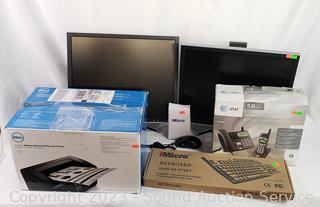 Lot #0205: Monitors, Corded/Cordless Phones, Printers, Keyboard