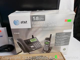 Lot Details: AT&T cordless telephone set, (2) Dell 19" monitor (work), Dell B1160W Wireless Black & White Laser Printer, (has power, otherwise untested), Micro USB keyboard.