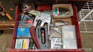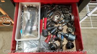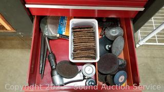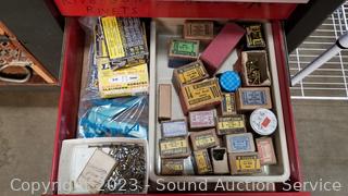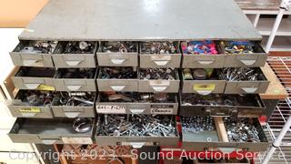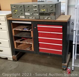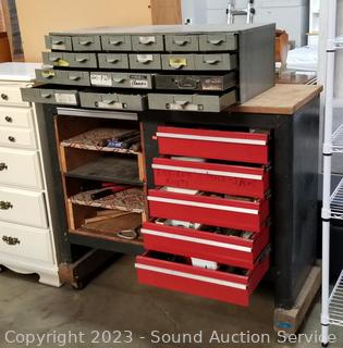 Lot #0005:     Organizer Full of Hardware & Tool Chest Work Bench