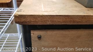 Lot Details: Organizer is full of hardware. Works bench has mounted wheels for easier movement. Full of files, staples, rivets, hole saw bits, screws, hardware, electrical connectors, pipe clamps, air hammer, wire wheels & more. Refer to photos for lot contents. 10.5" H x 34" W x 17" D organizer. 39.5" H x 46.5" W x 19.5" D work bench.