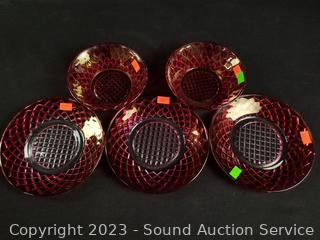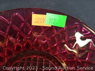 Lot #0112: 12pc Cranberry & 2pc Opalescent Glassware