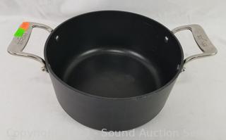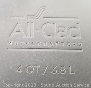 Lot Details: All Clad 4qt non-stick pot, Kirkland 11" 4.5qt stainless skillet, All Clad 10.5" Skillet w/Lid. Some signs of wear from use.