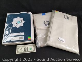 Lot #0246: 3 Beige Curtain Grommet Panels