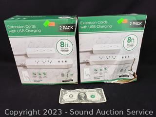 Lot #0279: (4) 8ft Extension Cords w/USB Charging