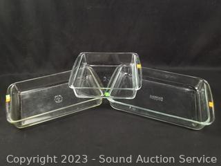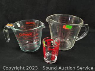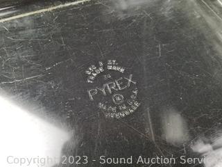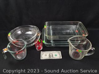Lot Details: 2 cup & 4 cup measuring cups. 7.5" x 12", 9" x 13" baking pans, pie pan, 8" server. Refer to photos for more info.