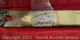 Lot Details: Looks old may be a replica. Unsure. Various wear to leather on interior, one strap is broken.