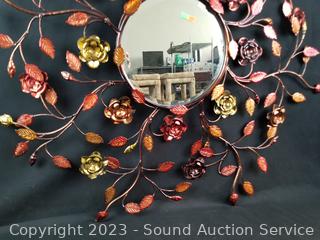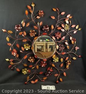 Lot #0317: Metal Art Leaf/Floral Beveled Mirror Wall Decor
