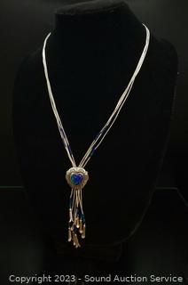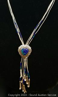 Lot #0232: Native Style Sterling Azurite Malachite Necklace