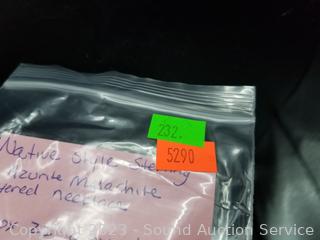 Lot Details: Layered necklace. Approx. 22" long, 3.5" x 1.5" pendant. Marked sterling on tab & back of pendant, all parts tested silver. TW:21.4g.