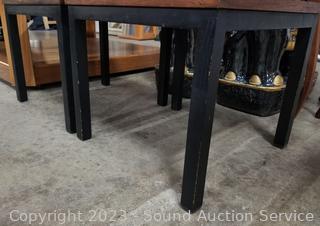Lot Details: 14" H x 16" x 16". Black lacquer finish on the base. Some scuffs, wear to finish. Tops in great condition.