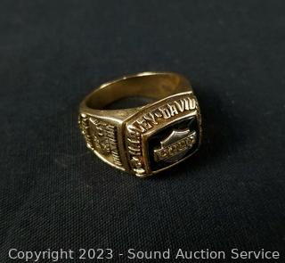 Lot #0139: 10K Gold & Diamond Harley Davidson Ring S:10.5