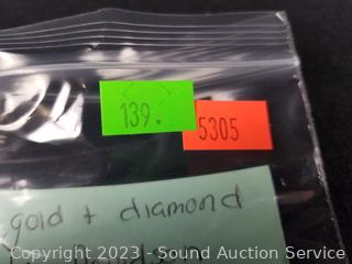 Engraved "Marcia J Demchok", marked 10K held on acid test. All stones tested diamond, 4 approx. 2mm setting. TW:16g.