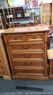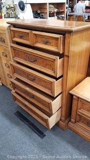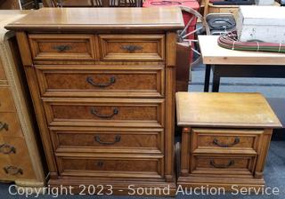 Lot #0027: 5 Drawer Dresser & 2 Drawer Nightstand