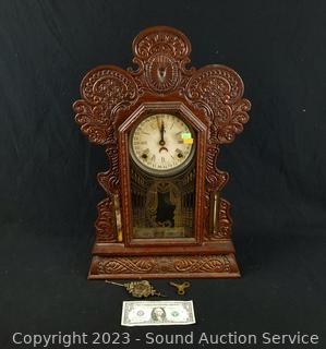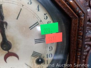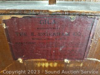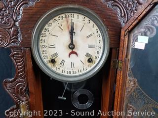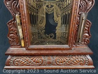Lot #0220: Antique Gila Carved Mechanical Clock w/Thermometer & Barometer