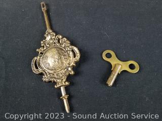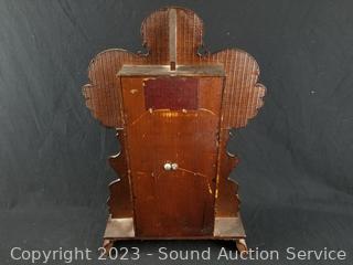 Barometer& thermometer don't appear to be functional. Clock won't stay running. Comes with key. 23" H x 14" W x 4" D.