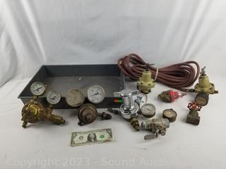 Lot #0087: Assorted Regulator Gauges, Valves, Hose
