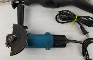 4-1/2" angle grinder. Reciprocating saw has some damage on cord. Both work.