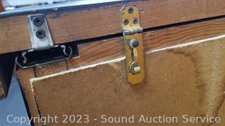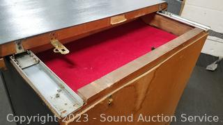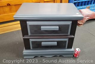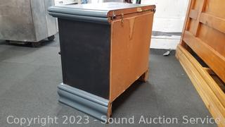 24" H x 26.5" W x 15.5" D. Overall great condition. Appears to be solid wood construction.