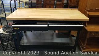 Lot #0022: NXA Steel 2-Drawer Wood Top 58" Work Bench